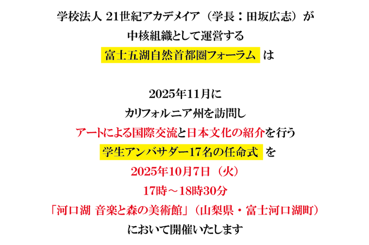 学校法人 21世紀アカデメイア(学長:田坂広志)が